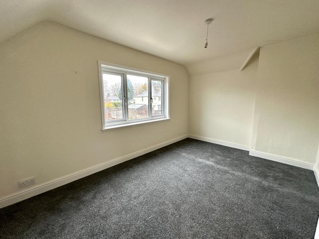 Third bedroom with a double glazed window to the rear of the property and carpet flooring.