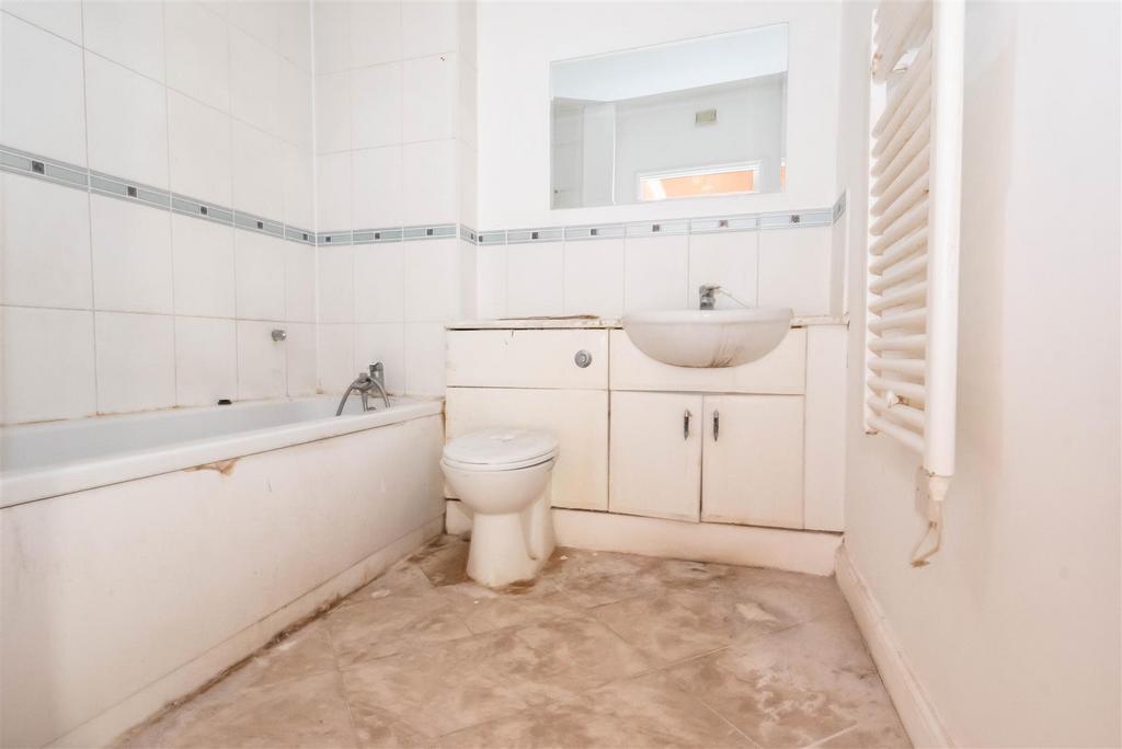 Bathroom - Bath with shower, low level WC, wash hand basin and partly tiled walls.