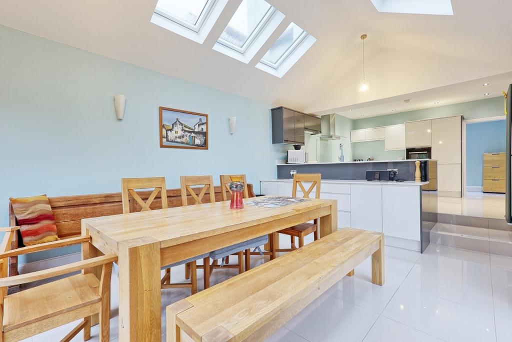 Upon entering the property, you will be greeted by a spacious entrance hall, which sets the tone for the rest of the house. The ground floor comprises a well-appointed kitchen, complete with a range of modern units, gas hob, and oven benefitting from seperate utility room housing integrated washing machine and tumble dryer. The kitchen leads through to a comfortable dining area with bi folding doors out to rear garden, perfect for family life and entertaining. The living room is a light and airy space, flooded with natural light from the bay large window.