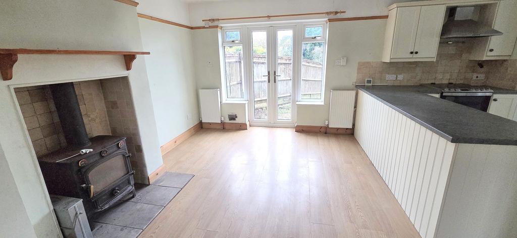 - Spacious open plan L-shaped Kitchen / Dining / Sitting Room fireplaces and adjoining Conservatory