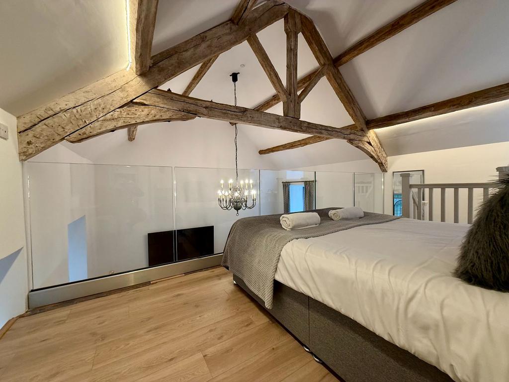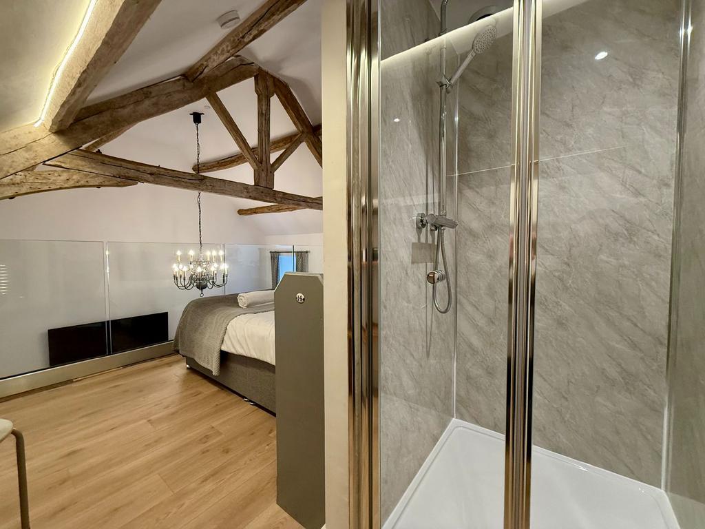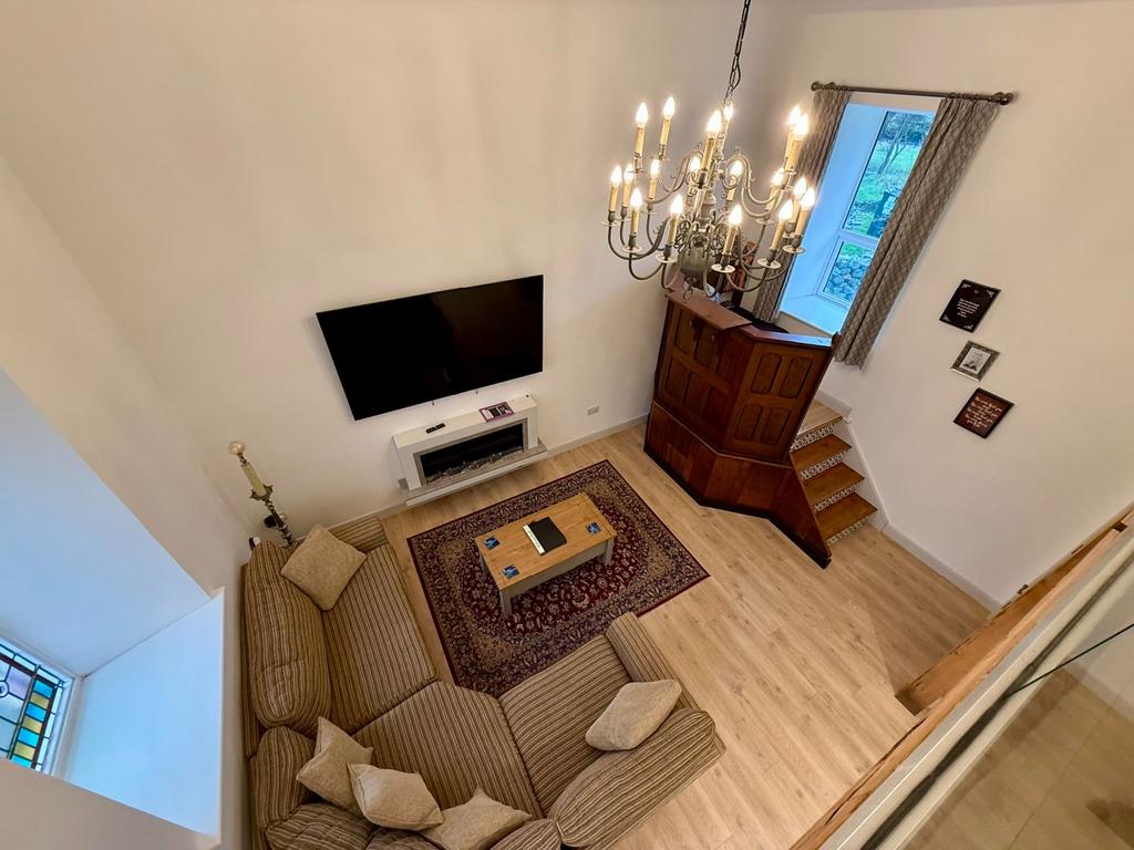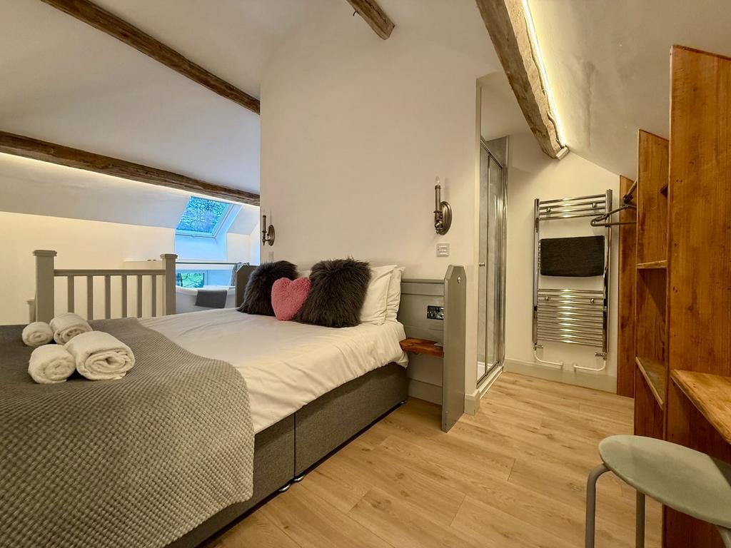 Formerly a chapel, Capel Peniel has undergone an extensive and thoughtful refurbishment to create a stylish one-bedroom holiday let. The property is presented in excellent condition throughout and features an open-plan sitting, dining, and kitchen area, with the original pulpit cleverly repositioned to form a cosy snug/seating space. A mezzanine bedroom with a glass frontage occupies the first floor, with a shower room and WC located discreetly behind the bed.