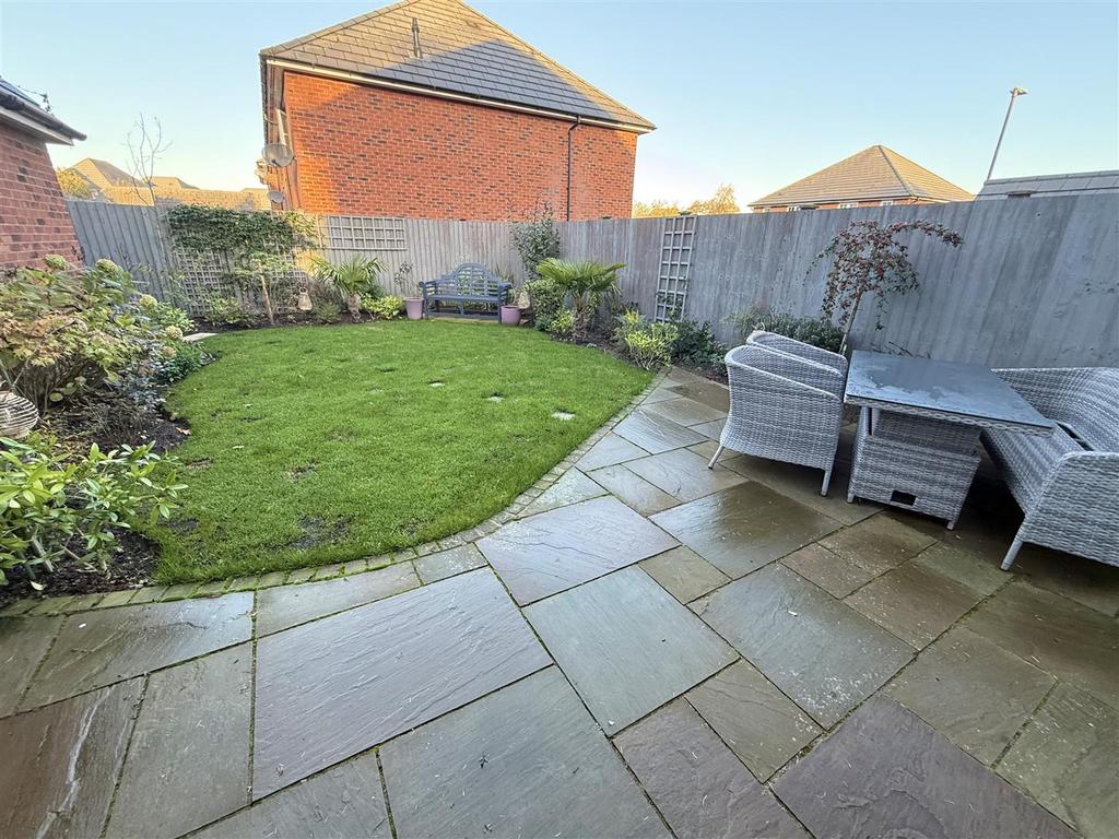 Rear Garden - The rear garden is fully fenced and enclosed, offering a high level of privacy. It is mainly laid to lawn with well-stocked flower borders and a patio area, perfect for al fresco dining. A side gate provides convenient access to the driveway.