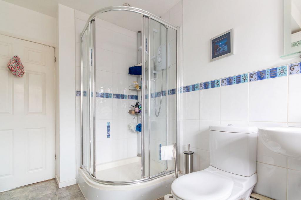 The family bathroom is fitted with a bath, separate walk-in shower, WC and basin — a well-designed and spacious room with a bright, fresh feel.