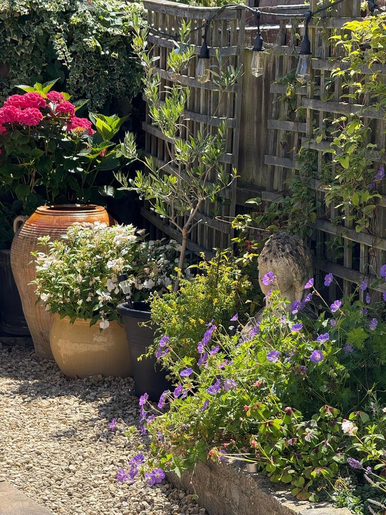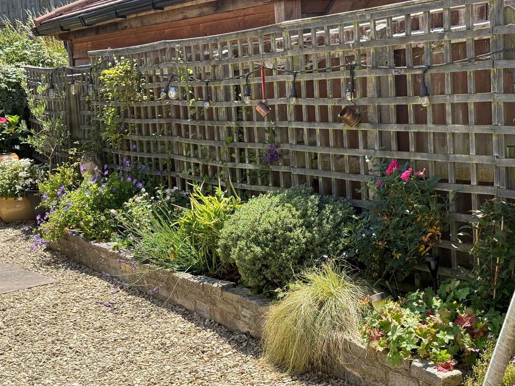- Low-maintenance, west-facing courtyard garden with raised beds and space for outdoor dining