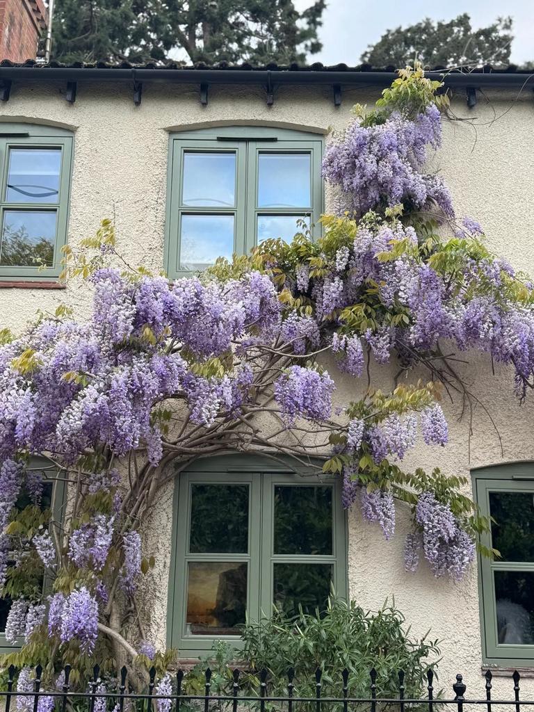 The garden is private, low-maintenance, and fully enclosed by mature planting and a stone wall, providing a peaceful outdoor space for relaxing or entertaining. A well-laid patio offers a perfect area for al fresco dining. At the front of the property, wisteria climbs the facade, adding a timeless cottage charm. The driveway provides additional off-road parking and complements the integral garage, making the exterior both practical and inviting.