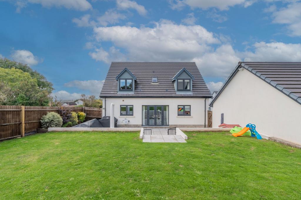 The principal bedroom is beautifully appointed, with a stylish en-suite shower room featuring stone-effect tiling, chrome fittings, and the added benefit of a heated towel rail. Three further double bedrooms provide excellent accommodation, served by a luxurious family bathroom fitted with a contemporary white suite and chic grey tiling.