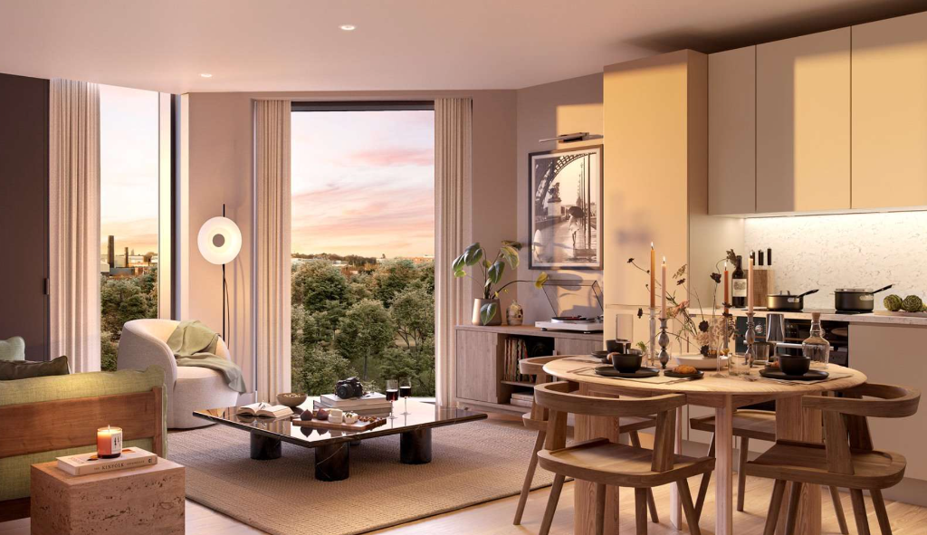 This beautifully finished three-bedroom, two-bathroom apartment offers sophisticated city-centre living with generous proportions and contemporary design. The open-plan kitchen and living area are enhanced by large windows, flooding the home with natural light and creating a bright, welcoming atmosphere.
