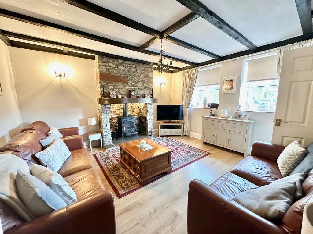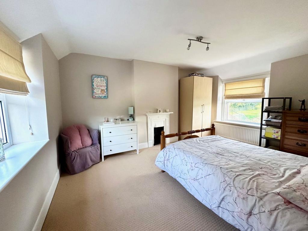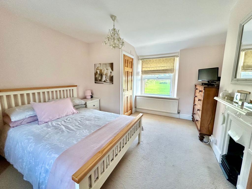 The main house welcomes you with an entrance hall that leads into a spacious kitchen/breakfast room, complete with fitted units, parquet flooring, and an attractive stone feature wall. Adjacent to the kitchen/breakfast is a utility room and a convenient walk-in pantry/store room. The main reception room, overlooking the rear of the property, boasts a charming stone fireplace with a log burner, and opens into a cosy snug/study. An inner hallway includes an external door to the rear garden, stairs to the first floor, and a doorway to a sitting reception room with its own fireplace. A family bathroom is also conveniently located on the ground floor. Upstairs, the main residence features a master bedroom with a feature fireplace and ensuite shower room, along with two additional bedrooms that offer lovely views of the rear garden.
