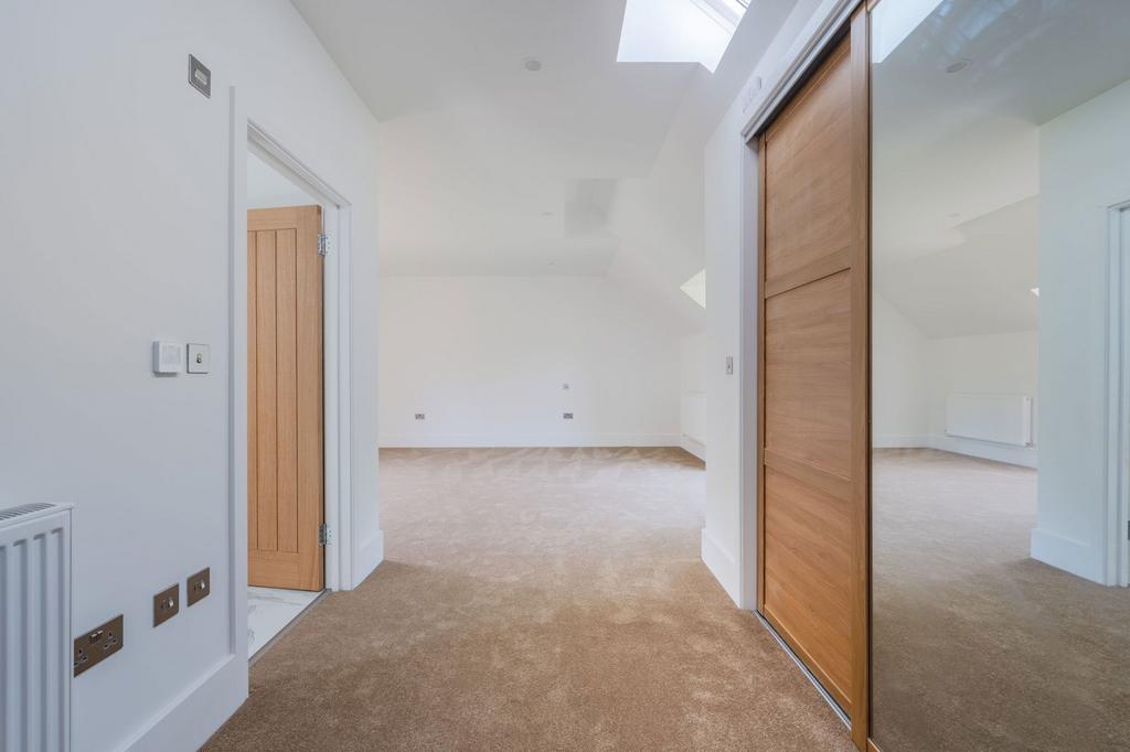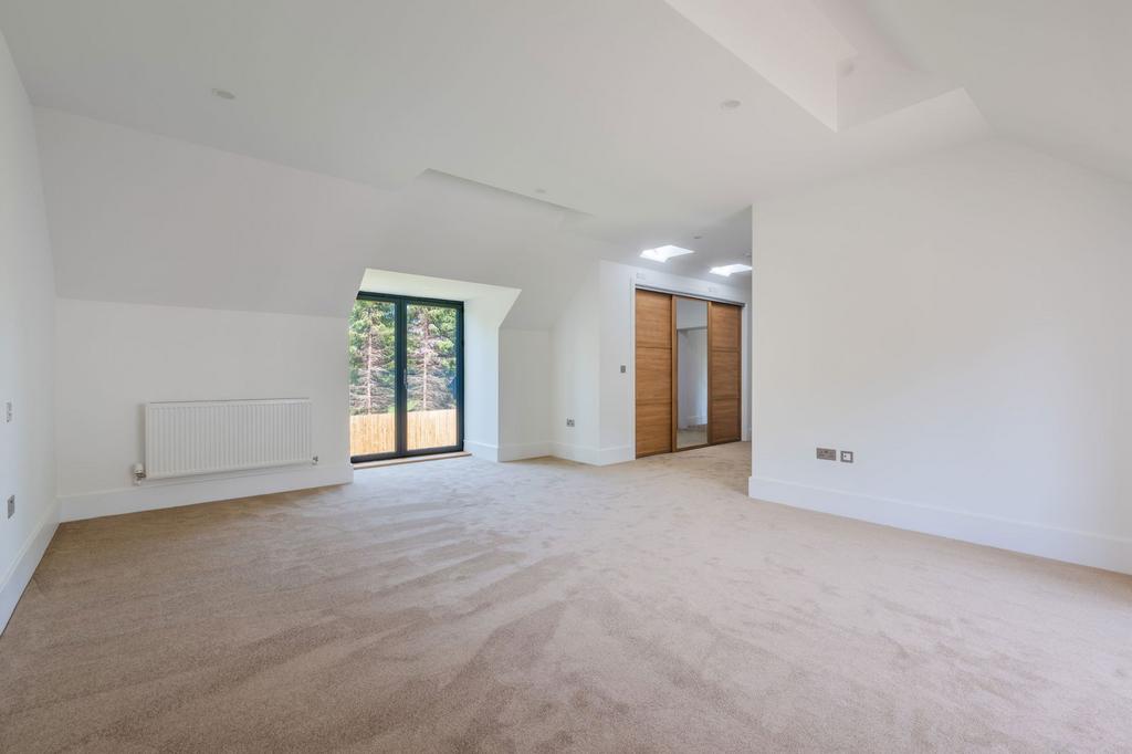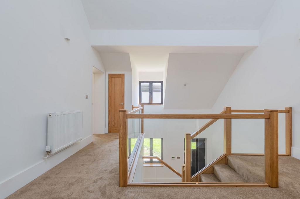 Upstairs, the principal bedroom suite is a particular highlight, occupying the full western elevation of the house with dual aspect views across open countryside, electric Velux windows, and a luxurious en suite. There are four further well-proportioned bedrooms served by three further bathrooms, each finished to an excellent specification.