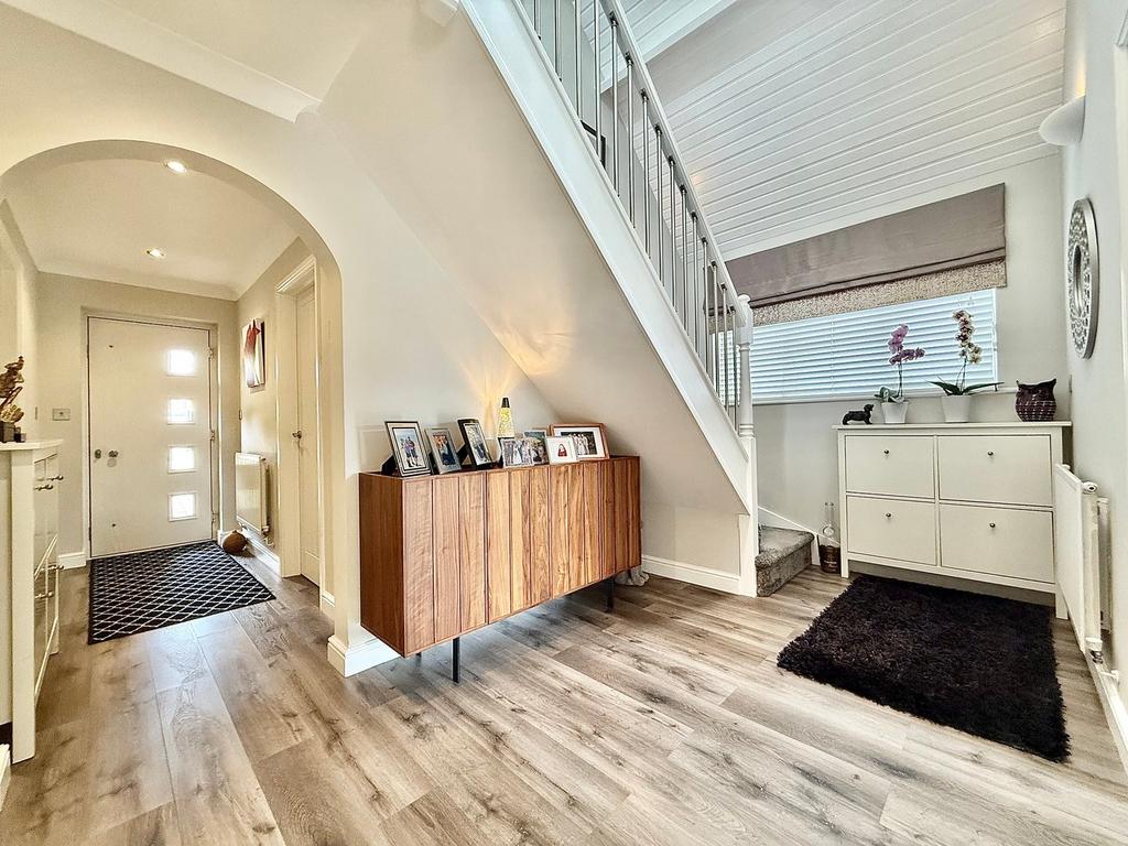 Front door, radiator X2, storage cupboard, ceiling spotlights, double glazed window to side aspect.