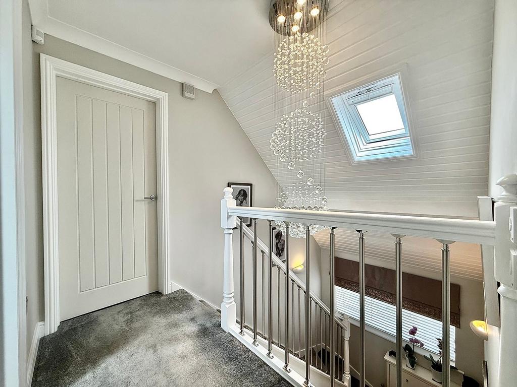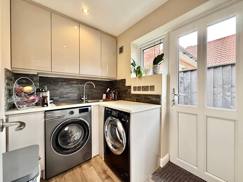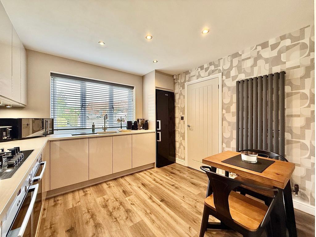 Double glazed window to front aspect, vertical radiator, ceiling spotlights, sink draining board, integrated oven, hob, and extractor, integrated dishwasher. Quartz work surfaces.