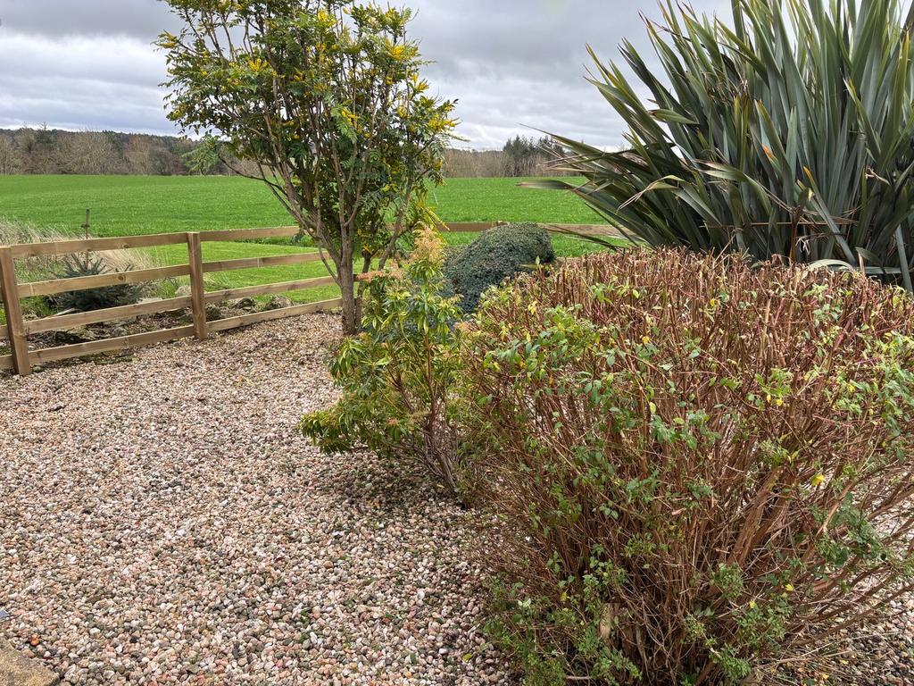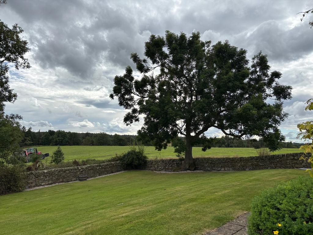 The property benefits from a large private garden area and enjoys open outlooks over surrounding farmland. Parking is available on site.