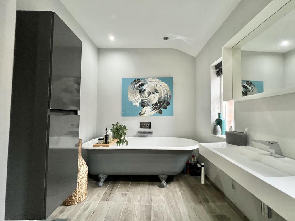 Two UPVC double glazed windows to the side aspect. Modern fitted four piece suite comprising; walk in shower cubical with glass screen, wash hand basin, low flush wc, free standing bath and wall mounted towel rail.