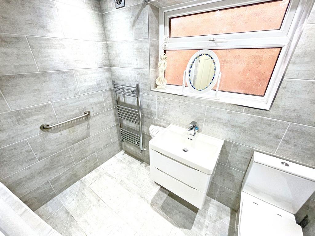 Refitted creating a walk in shower, wash basin and low level w.c., Double glazed window t the side and central heating radiator.