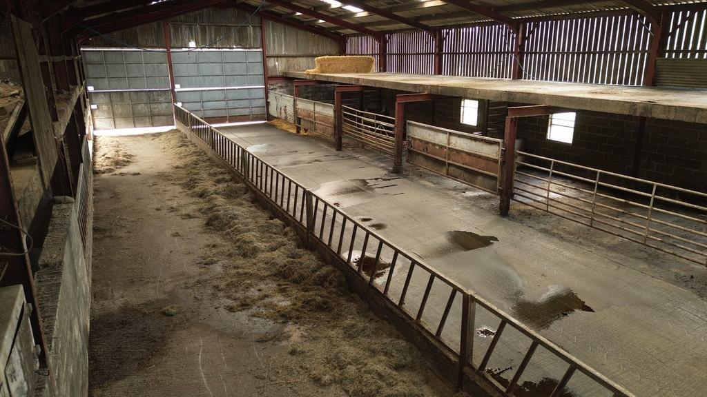 90' 0" x 45' 0" (27.43m x 13.72m) Of concrete framed under a fibre cement roof and Yorkshire boarding elevations. With the ability of dividing the loose housing into 6 separate pens. One large feed passage throughout the shed with large doors either end for access. An integral loft over for straw bedding. Solar Panels.