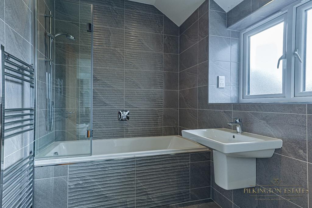 Upstairs, the galleried landing leads to three beautifully appointed bedrooms and a stylish family bathroom. The elegant principal bedroom benefits from fitted wardrobes and a modern en-suite shower room, while the second bedroom also offers fitted storage. A boarded loft, accessed via a ladder, provides excellent additional storage space.