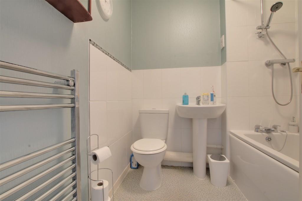 Fitted with a panelled bath which has mains shower over, low level WC and hand wash basin.