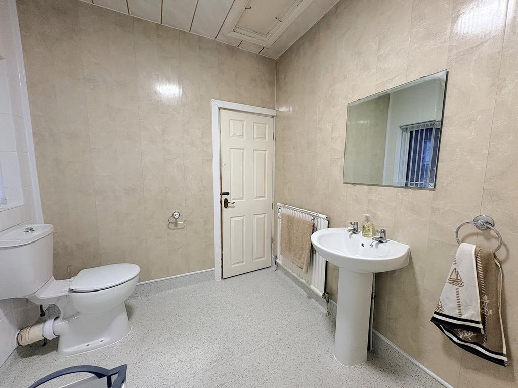 Upstairs, the property offers four bedrooms and a large bathroom. Three of the bedrooms are spacious doubles, one of which features another rounded bay window that mirrors the style of the ground floor, while the fourth bedroom is a good-sized single that could also serve as a home office or nursery. The bathroom, currently configured as a shower wet room, is well maintained and offers ample space to add a bath if desired. It provides a solid and generous sized foundation for a stylish renovation to add a modern family bathroom.