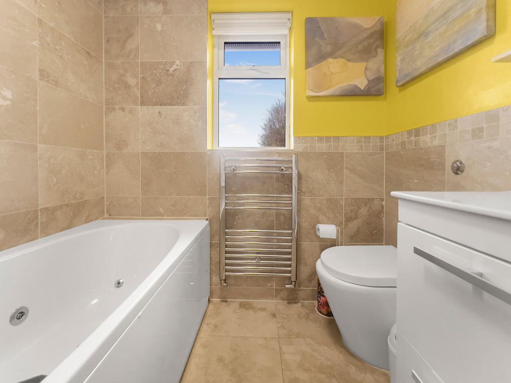 To the first floor are two well-proportioned bedrooms, each benefitting from plenty of natural light. The primary bedroom was originally two separate rooms and has been thoughtfully opened up to create a generous space, with the option to reinstate the original three-bedroom configuration if desired. The bathroom features a whirlpool bath with shower over, adding comfort and flexibility.