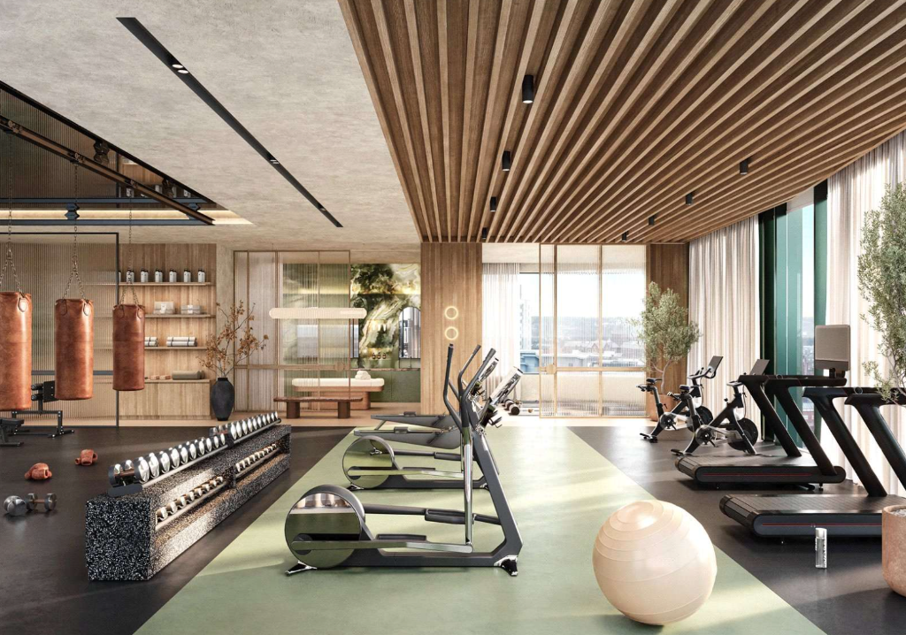 - Gym, wellness studio, co-working lounge, bar & private dining room