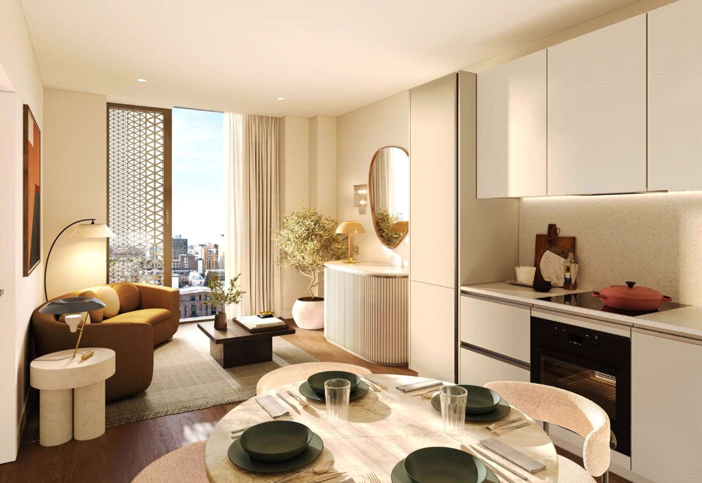 This stunning three-bedroom, two-bathroom apartment represents a new era of city living, ideally positioned within one of Manchester’s most dynamic regeneration districts. Designed for comfort, light, and modern functionality, the home features floor-to-ceiling windows, open-plan living spaces, and sleek contemporary finishes throughout.