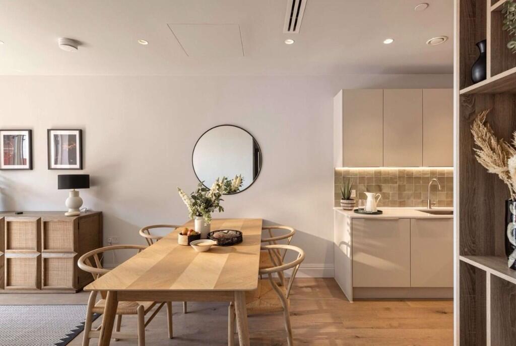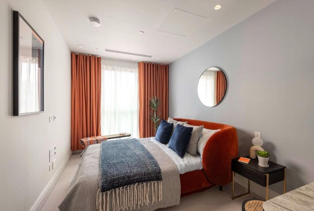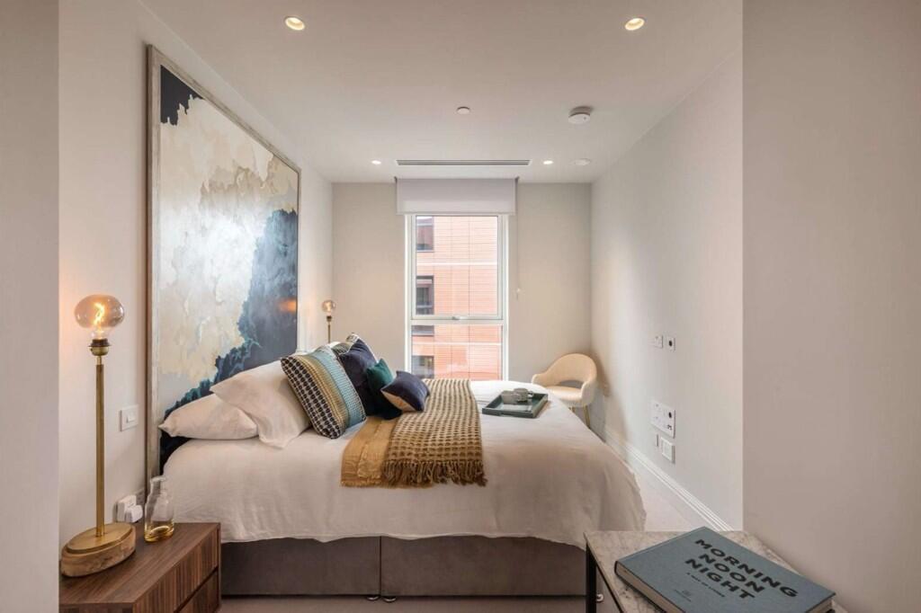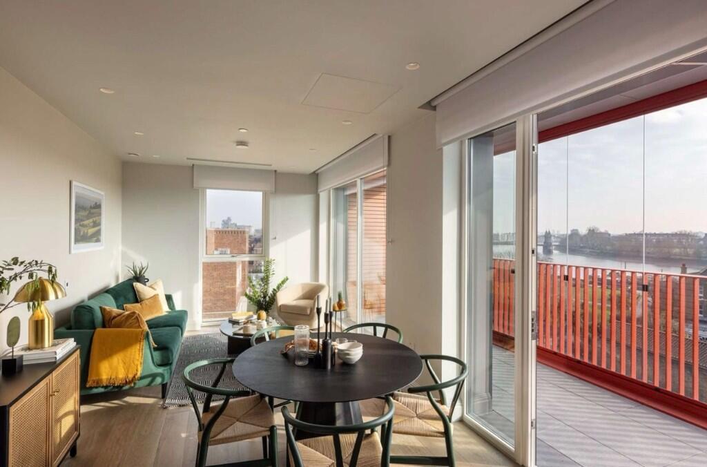 A stylish one-bedroom apartment offering 538 sq ft (49.98 sq m) of thoughtfully designed living in a prime West London riverside setting. The open-plan layout is perfect for modern life, with large glazing flooding the space with natural light, a sleek fitted kitchen with integrated appliances, and a calm bedroom suite.