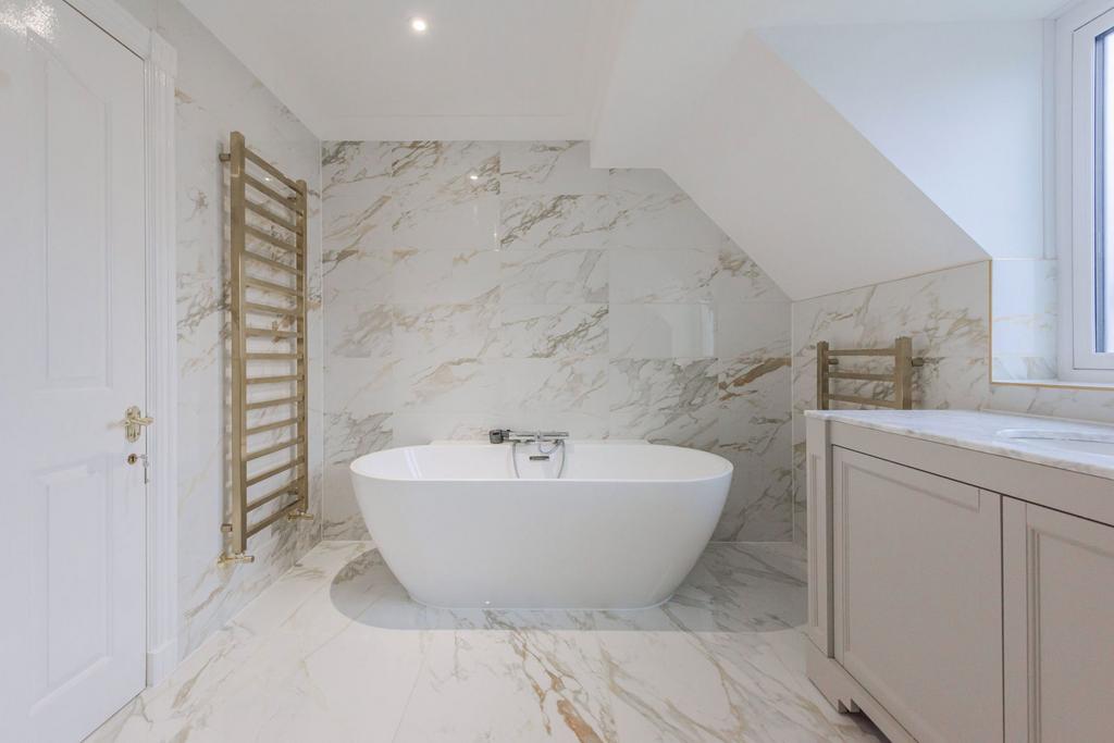 Upstairs has that same relaxed, comfortable feeling. The main bedroom has its own freshly refitted en-suite that looks like something out of a hotel. Clean lines, modern fittings, nothing fussy. The family bathroom fits the same style too. Big tiles, soft colours, and that proper “ahhh” feeling when you walk in.
