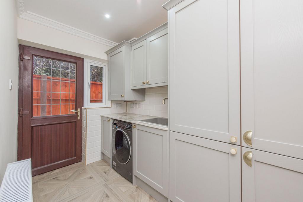 Because it’s all brand new, it’s got that clean, uncluttered look, and it’s one of those kitchens where people end up sitting around chatting even if they only popped in for five minutes. And with the new utility right next to it, you can keep the chaos tucked away. Laundry, muddy football kits, school bags, all hidden from sight.