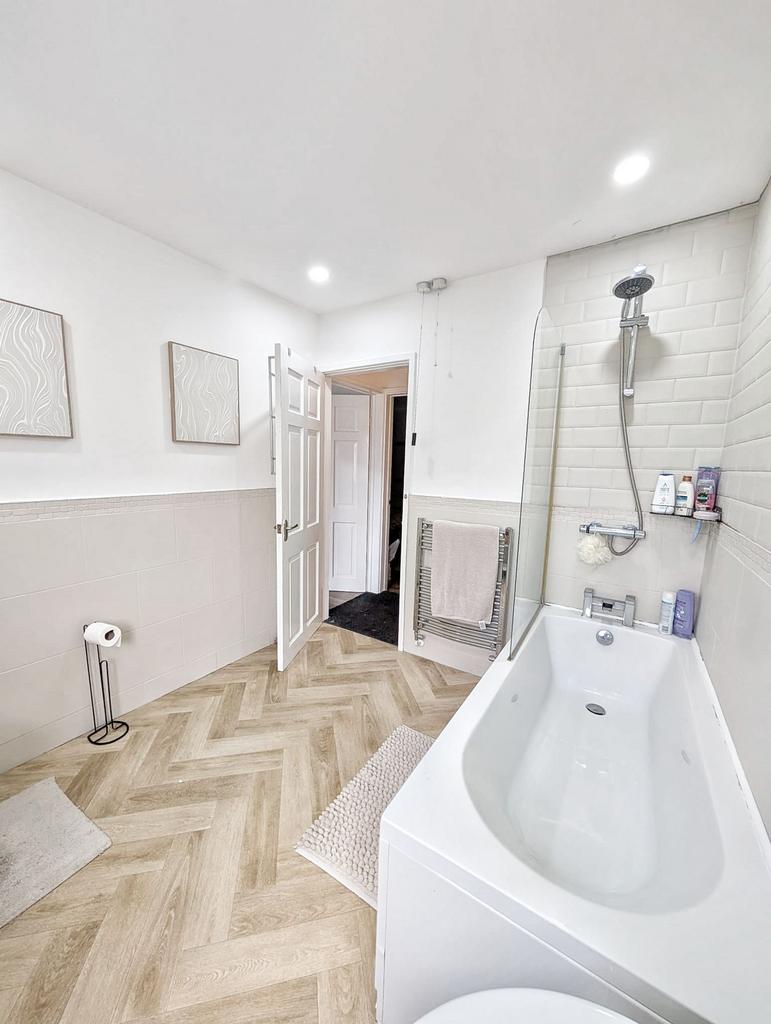 From the moment you step inside, you’re met with a calm, neutral palette that sets a peaceful tone throughout. On the lower ground floor, the kitchen, dining area, and utility room are connected through framed transitions, creating a natural flow while giving each space its own identity. This level extends out to the rear garden, making outdoor living feel effortless.