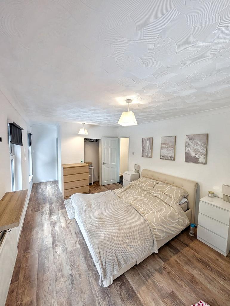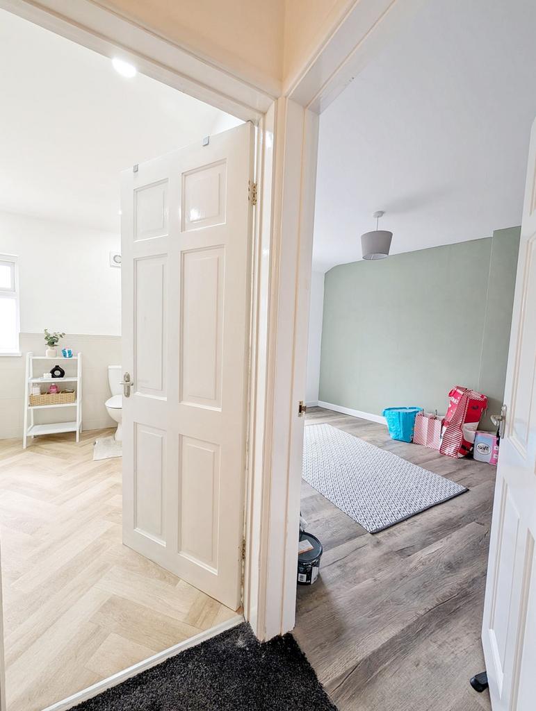 Upstairs, the top floor hosts two well-proportioned bedrooms: a spacious master with built-in storage, and a second double room ideal for guests, work-from-home needs, or quiet retreat. The bathroom is also on this floor, finished in soft, contemporary tones and easily accessible from both rooms. Above, a fully boarded loft adds even more flexibility, whether for storage or future creative use.