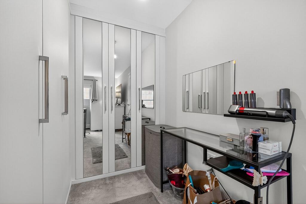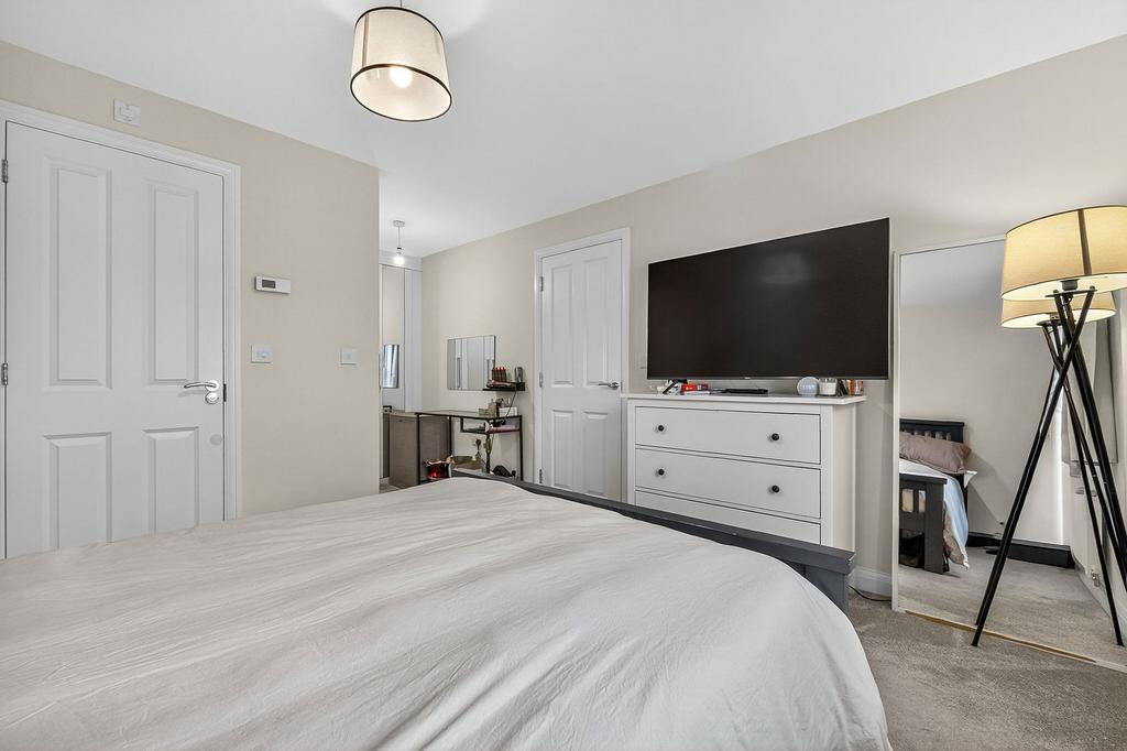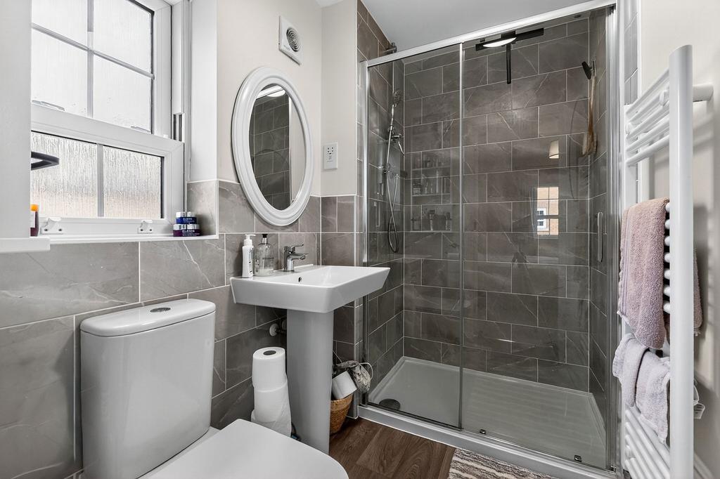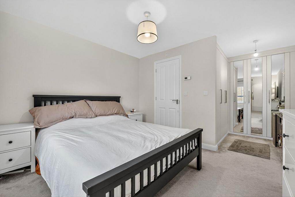 The first floor hosts the impressive master bedroom, complete with a dressing area and a stylish en-suite shower room. A further double bedroom with built-in storage, along with the well-appointed family bathroom, can also be found on this level. The second floor is ideal for growing families, visiting guests or home working, offering two further well-proportioned bedrooms and a modern shower room.