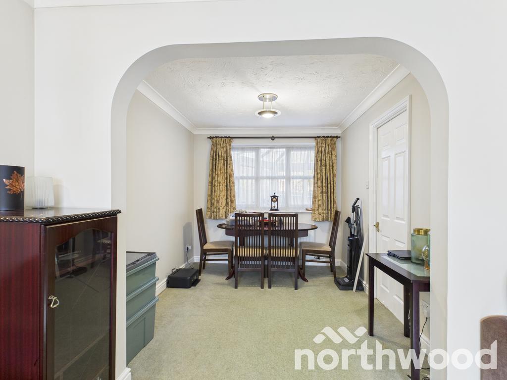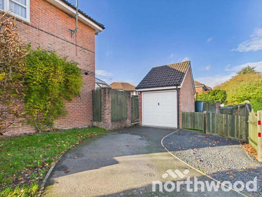 Outside, the rear garden is functional, with a lawn and paved path leading to a detached garage and driveway offering ample off-road parking. The front garden is bordered by a mature hedge, providing privacy and curb appeal. Being set on a corner plot, the property also offers scope to extend the parking area or further enhance the outdoor space.