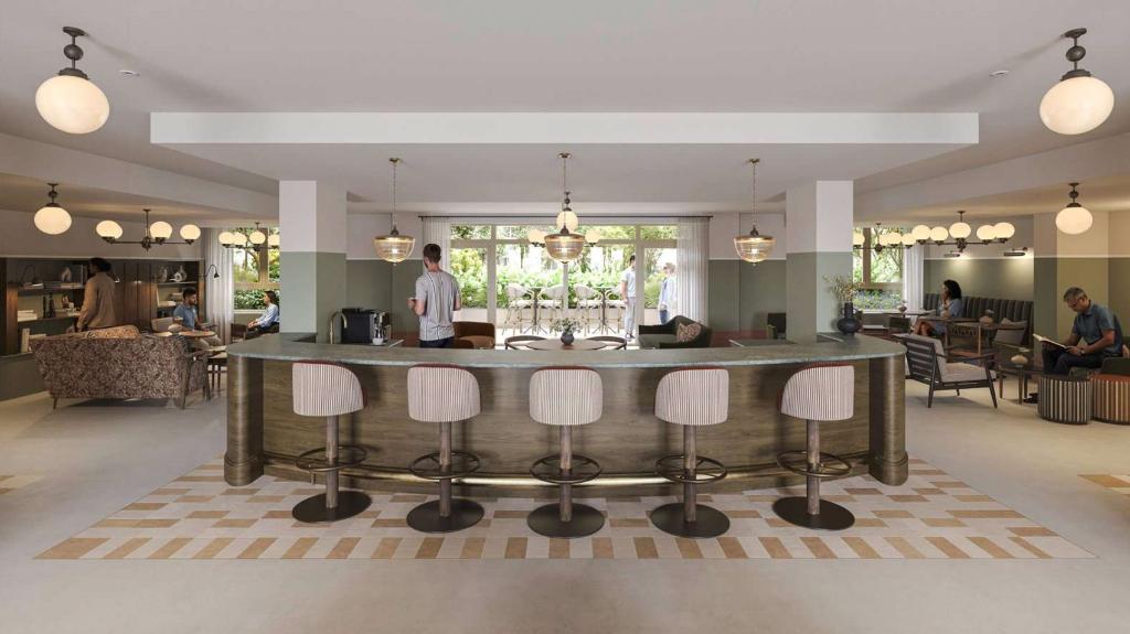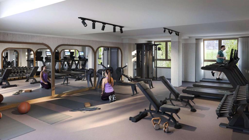 - Access to gym, cinema, co-working space, and courtyard gardens