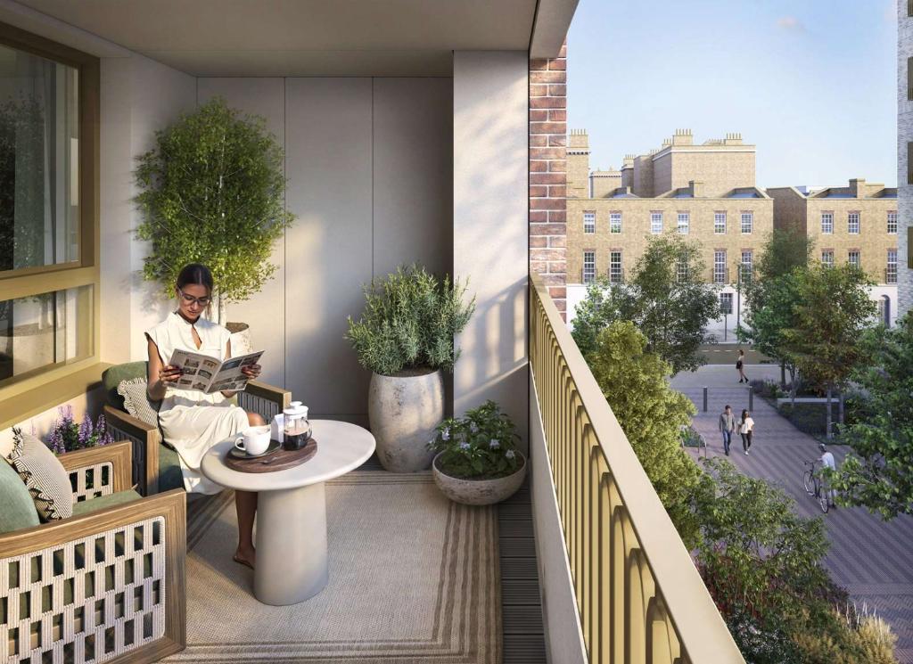 Residents enjoy access to a suite of exclusive amenities, including a tech-enabled gym, screening room, co-working lounge with outdoor terrace, and landscaped podium gardens — all designed to support modern London lifestyles.