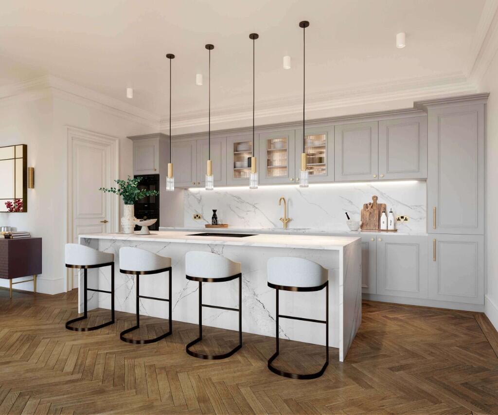 The homes — including elegant apartments, duplexes, and family houses — have been beautifully crafted with open-plan layouts, high-spec kitchens with integrated appliances, and spacious living areas filled with natural light. Select homes benefit from private terraces, balconies, or gardens, providing peaceful views across landscaped grounds.