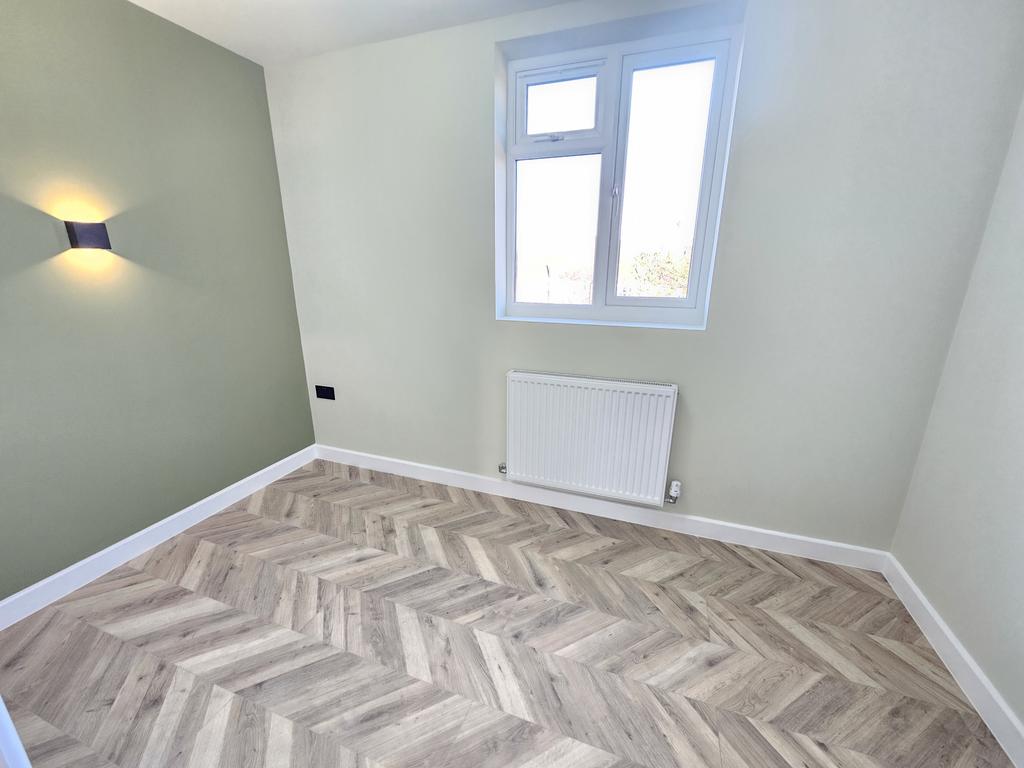 The bedrooms are spacious and bright, featuring full-height windows and a calming neutral decor. The principal bedroom enjoys the added benefit of a broad bay window with fitted blinds, offering a tranquil spot for rest or work. Both bedrooms provide flexible accommodation for a variety of living arrangements or a dedicated home office.
