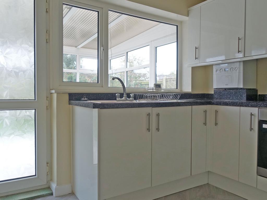 The inviting entrance porch opens onto an “L” shaped hallway, guiding you through the generous accommodation. At the heart of the bungalow, a spacious lounge provides ample space for entertaining or relaxing, complemented by a feature window that fills the room with natural light. The kitchen is thoughtfully fitted with modern wall and base units, complete with an integrated electric oven and hob, and space for a fridge freezer – making meal preparations a breeze.
