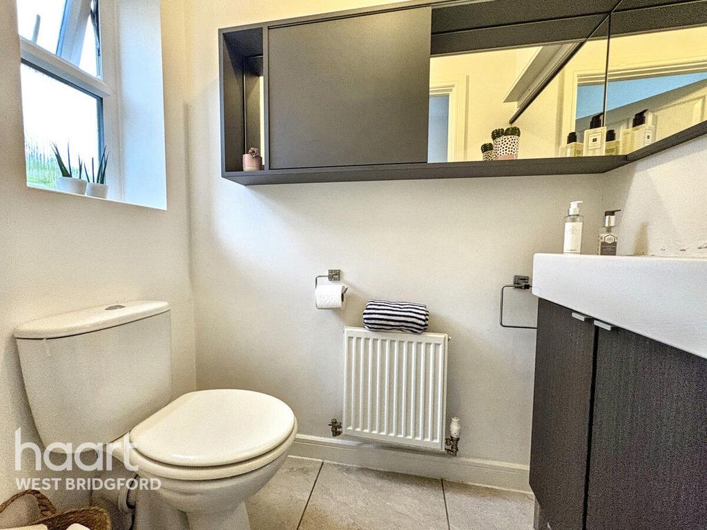 tiled flooring, low flush W/C, radiator, UPVC Double Glazed obscured window to front elevation