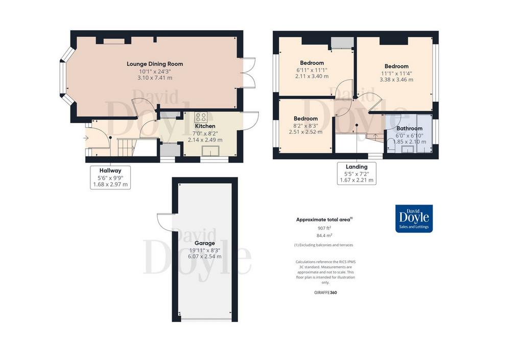 The ground floor is arranged with an open plan lounge dining room, a kitchen and an entrance hall with stairs leading to the first floor.