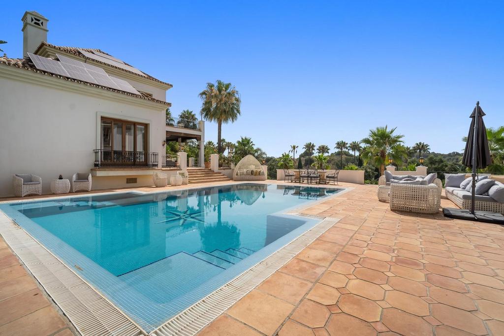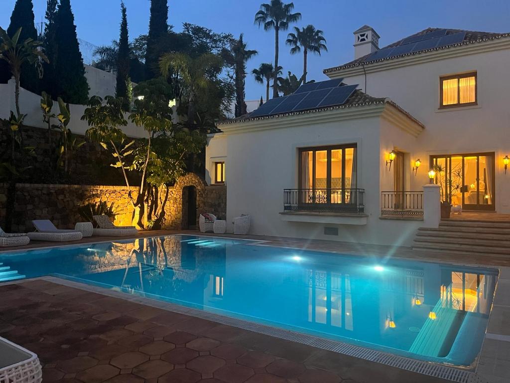 This grand Mediterranean estate, nestled in the peaceful Paraiso Alto area, offers the ultimate in luxury living and entertaining. Perfect for a large family, a luxurious retreat, or even a boutique hotel, the property comprises of a meticulously designed main house, a recently renovated guest house, and staff apartments.