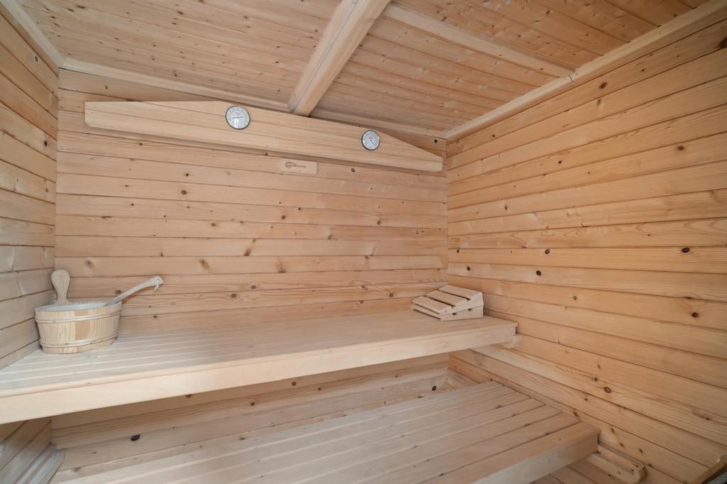 The sprawling main house boasts three floors and a separate entrance on the lower level. Upon entering, you’ll be greeted by a magnificent living room that seamlessly flows onto a stunning terrace, leading you directly to the inviting swimming pool. The open-plan design integrates the living, dining, and relaxation areas with a bar, creating a perfect space for socializing. A separate, fully-equipped kitchen offers easy access to the terrace. Completing this floor is a comfortable bedroom with a private bathroom, dressing room, and its own terrace access.