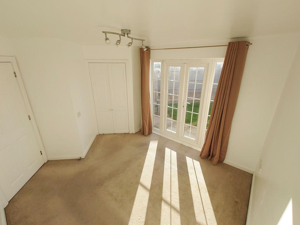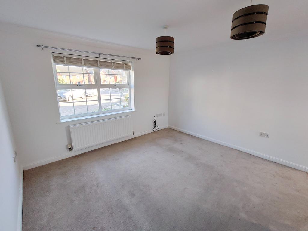 Generous, carpeted living room with window to front of property. Built-in, full height storage cupboard.