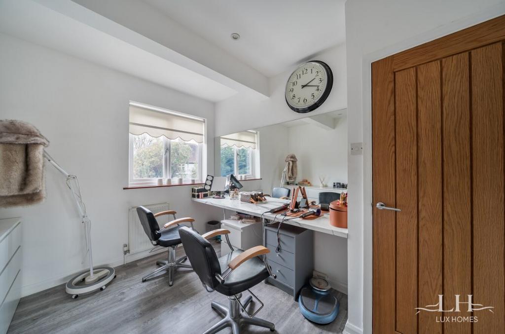 The upper floor hosts five well-proportioned bedrooms, each beautifully finished and offering excellent versatility for a growing family. The principal bedroom is particularly spacious, with ample room for wardrobes and additional furnishings.