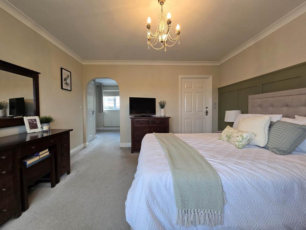 A gently turning staircase rises to a galleried landing, creating a striking sense of arrival on the first floor. From here, the layout unfolds gracefully to five well-proportioned bedrooms, including the luxurious master suite and the private guest suite, each thoughtfully designed for comfort and retreat. Completing the accommodation is a well-appointed family bathroom, finished with quality fittings and offering excellent convenience for the remaining bedrooms.