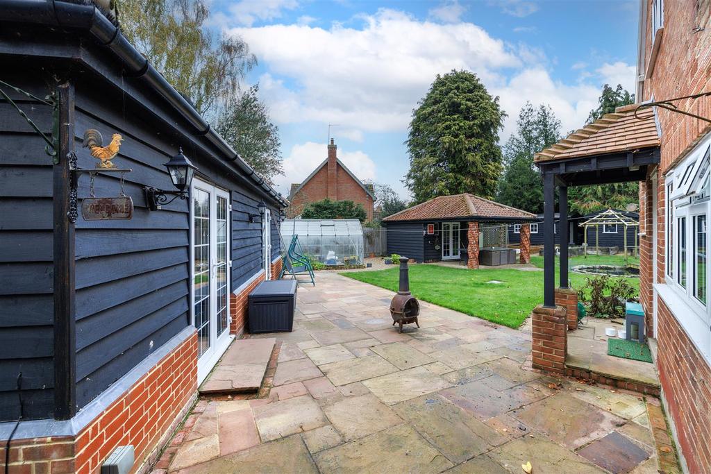 - Large, well-maintained garden that is mainly laid to lawn with different pockets of interest such as a pond, patio area and a range of outbuildings.
