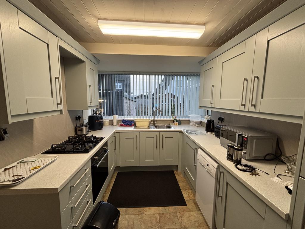 Kitchen. (10'4 x 8'3) Fitted kitchen having a range of base and wall units, stainless steel sink unit with mixer taps, built in oven, hob , integral fridge/freezer and washing machine. Plumbing for dishwasher, double glazed window and door.