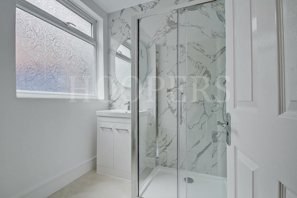8’10” x 6’2” (2.68m x 1.88m). Shower cubicle. Vanity wash hand basin Low level WC. Heated towel rail. Partly tiled walls. Double glazed window.