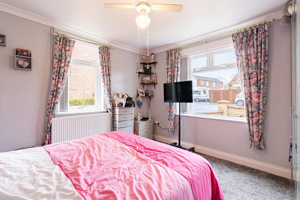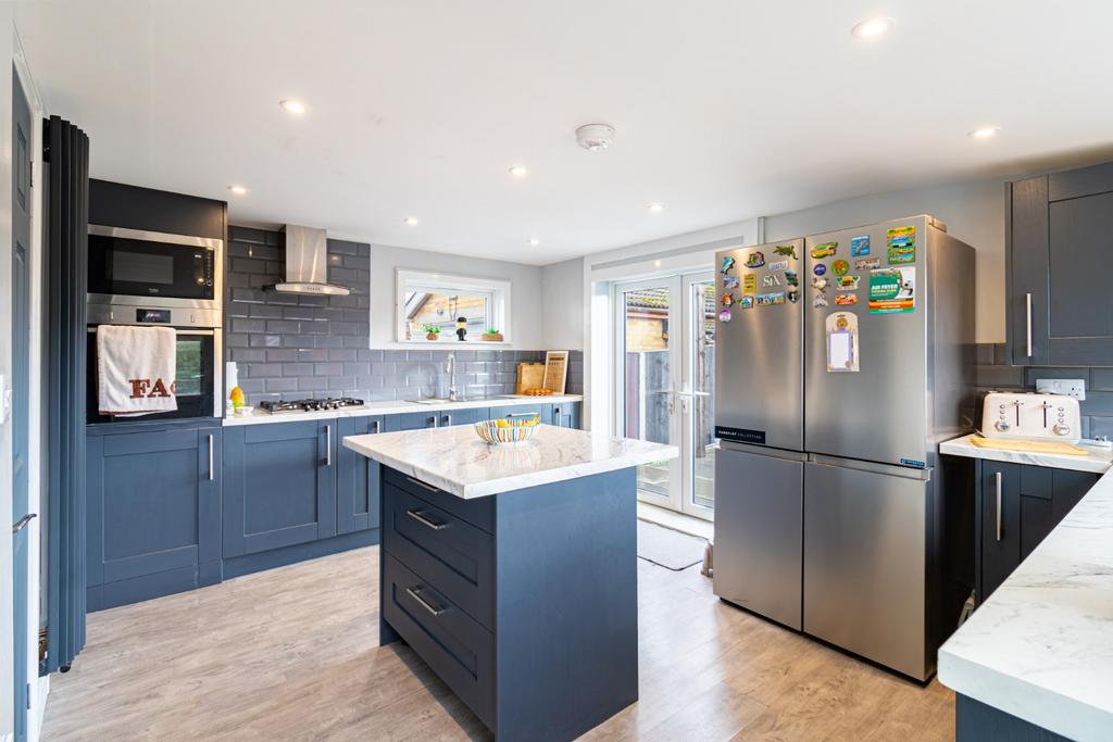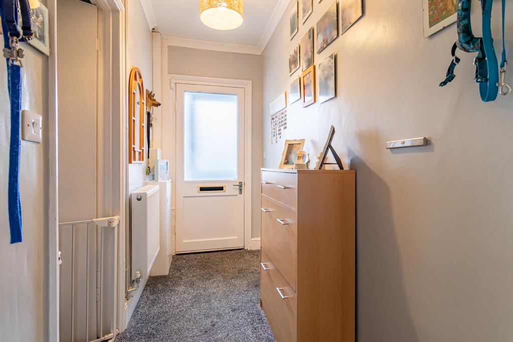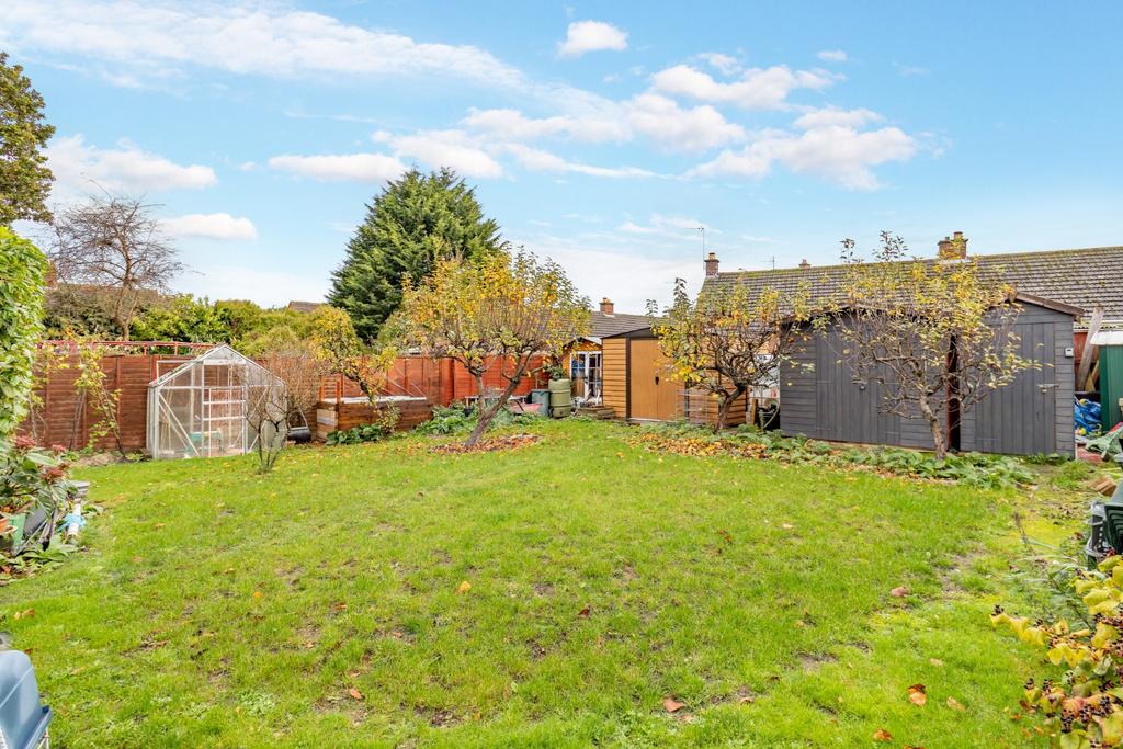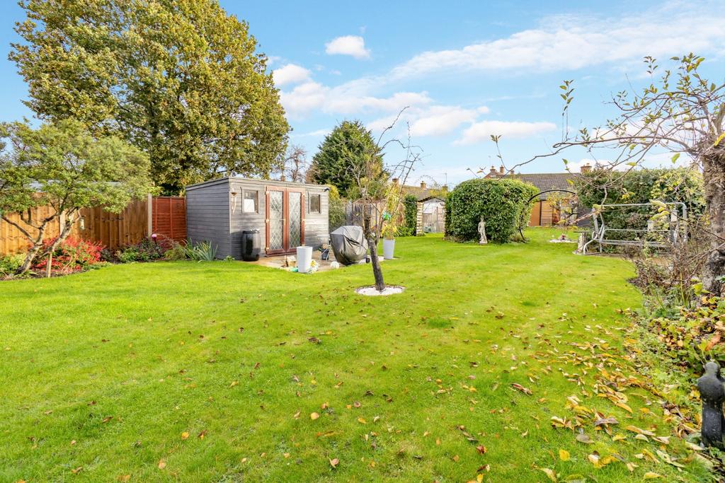 Upon entering the property, you are welcomed into an entrance hall that extends through the centre of the home. To one side of the hallway are two well-proportioned double bedrooms, both served by a modern shower room comprising a walk-in shower and a combination vanity unit with wash basin and WC. On the opposite side of the hall is the spacious living room, stretching over 24ft and offering an excellent space for entertaining. Moving towards the rear of the home, you will find a dedicated dining area and a sunlit garden room that provides a wonderful place to relax. Completing the accommodation, and one of the highlights of the home, is the contemporary kitchen overlooking the garden. It features a range of matching shaker-style storage units, a central island, gas hob with extractor, and integrated oven and microwave. The kitchen is further enhanced by a useful pantry cupboard and an additional storage cupboard currently used to discreetly house laundry appliances.