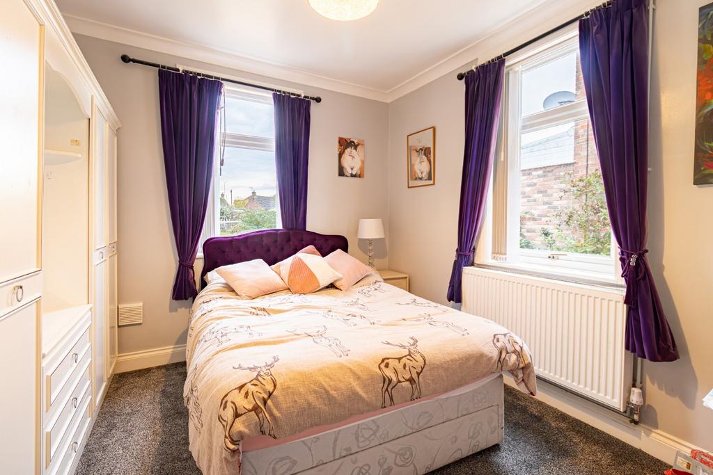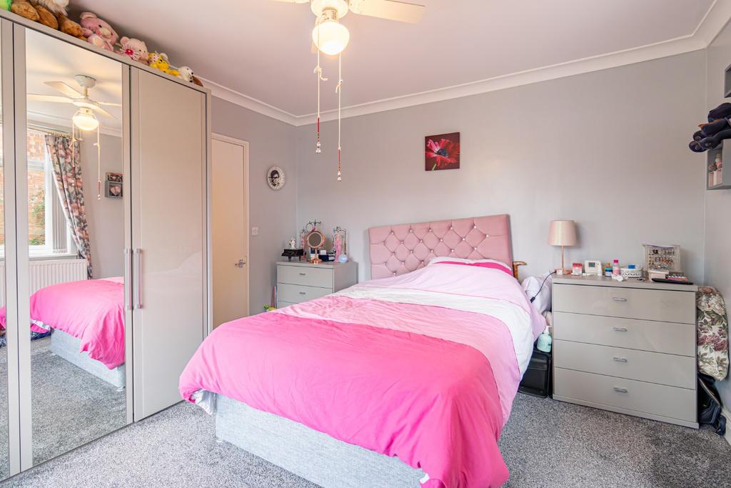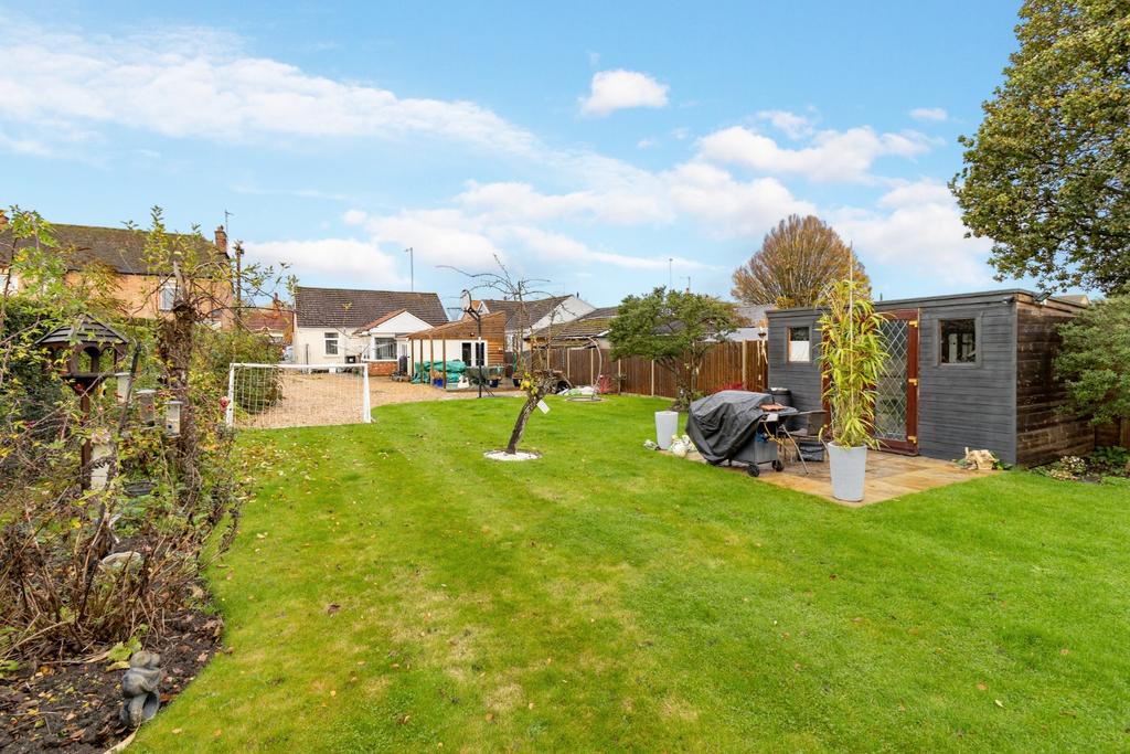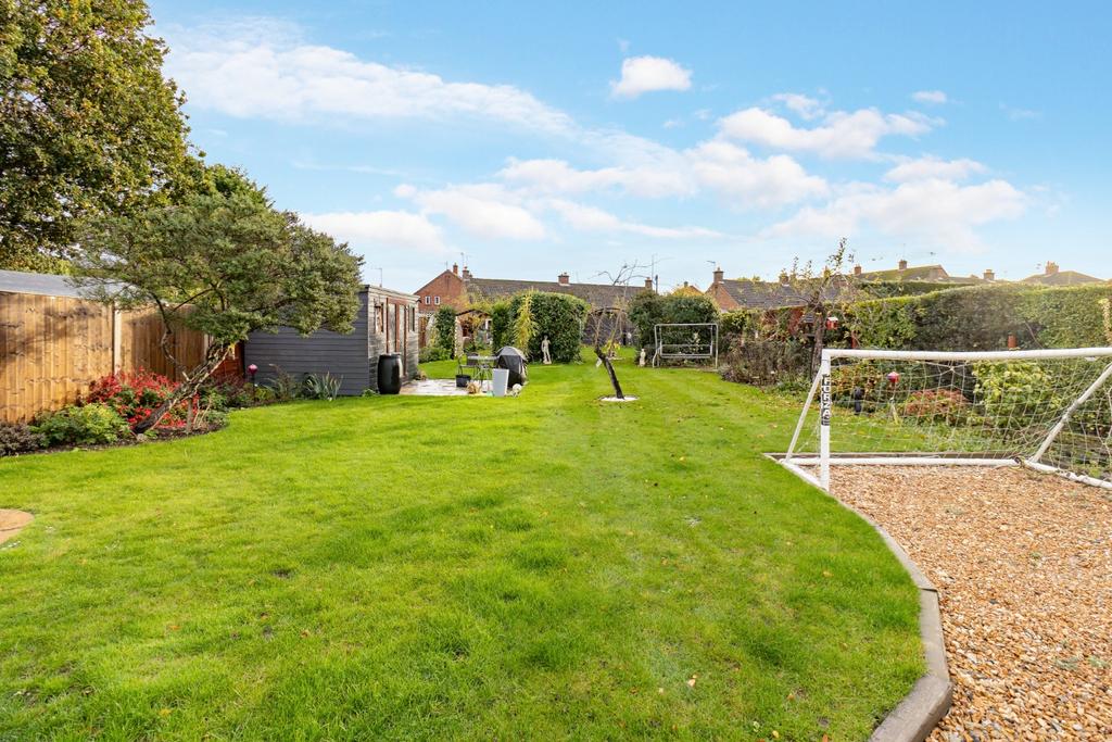 The property is approached via a gravel driveway providing off-road parking and leading to a pair of gates that open to additional parking at the rear. The generous rear garden is fully enclosed and well maintained, creating an ideal space for both relaxation and entertaining. Extending from the kitchen is a patio area offering an excellent spot for outdoor dining during the warmer months. The current owner uses this area for their hot tub, which may be available by separate negotiation. The remainder of the garden is predominantly laid to lawn, complemented by attractive planted borders that add colour and character to the space.