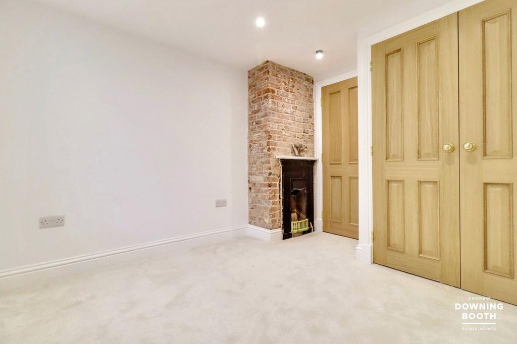 Double bedroom including built in wardrobe with solid double doors, an original fireplace set on a feature brick wall provides a stunning focal point, electric heater and double glazed sash window to front.